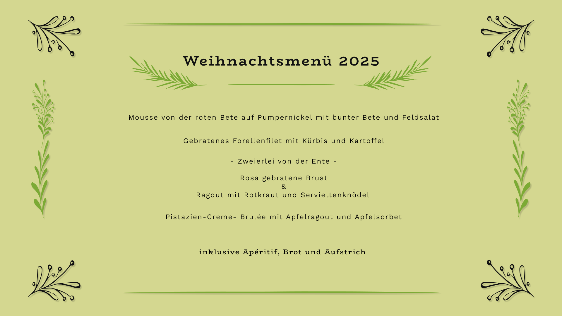 Auch diese Jahr bieten wir euch wieder wie gewohnt unser Weihnachtmenü an.